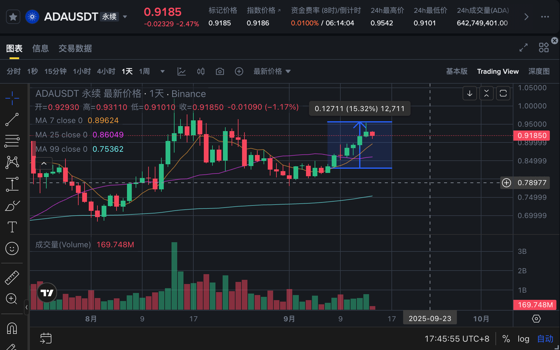 ADA 0.83-0.95 0.1的缓慢的单边上涨行情 ETHUSD - TradingView
