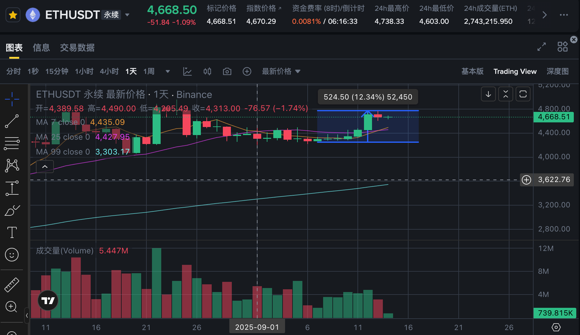 ETH 4270-4700 500点的缓慢的单边上涨行情 ETHUSD - TradingView
