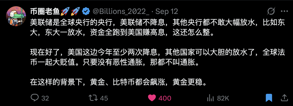 美联储是全球央行的央行,美联储不降息,其他央行都不敢大幅放水,比如东大,东大一放水,资金全跑到美国赚高息,这还怎么整。