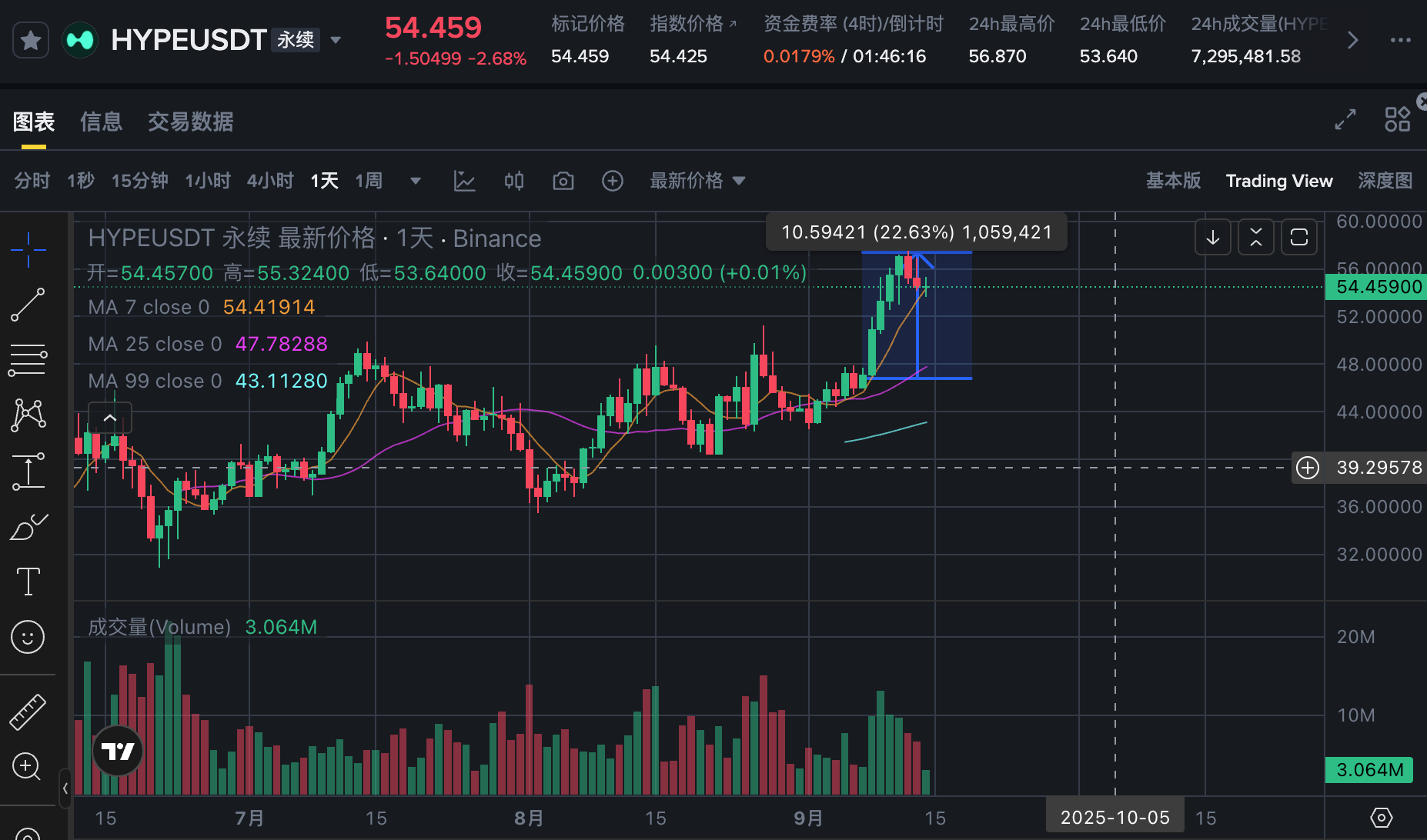 传出消息之后,hype在这一周迎来了20%左右的涨幅,对于稳定币的发行我不是行家,我所知道的就是hype不仅仅是一个dex,不仅仅是一个代币,而是一个生态,大家去深入了解下就可以知道了,甚至可以质押hype然后自建交易所【我理解的应该是这样,可能有错,大家自行研究】