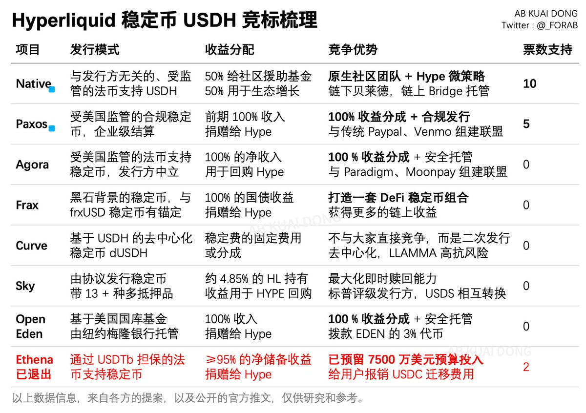 今天是 Hyperliquid 稳定币 USDH,各家截止竞标提案的日子,目前有 10 多家,公开宣布要参与此次竞标。