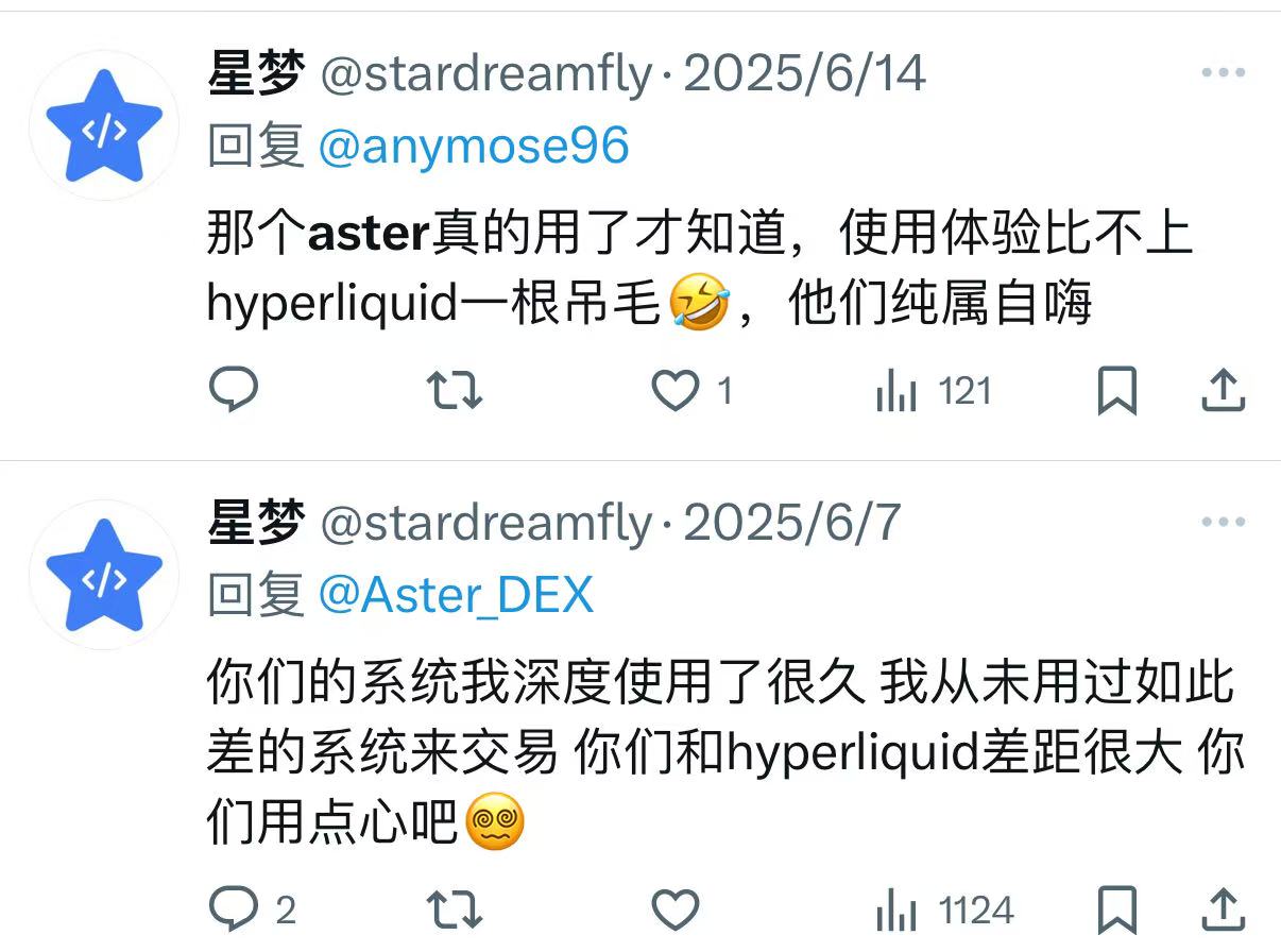然后我觉得后面这个aster会有炒作,于是在tge前三天布局了apx,那时候价格0.1,当时想着币安站台肯定会有炒作和拉盘。然后等到上线前两个小时我看从0.1跌到了0.09,我的信念便开始动摇了,便想着tge之后肯定会有很多空投砸盘,然后我就把拿了三天亏损10%的币卖了。然后上线之后我准备去网站上把3200个币卖了等低点再接回来,谁知道打开网站点击现货直接跳转404,多次尝试之后,我打开x搜索发现评论区很多喷产品垃圾的,我也喷了两句然后干别的事情了。