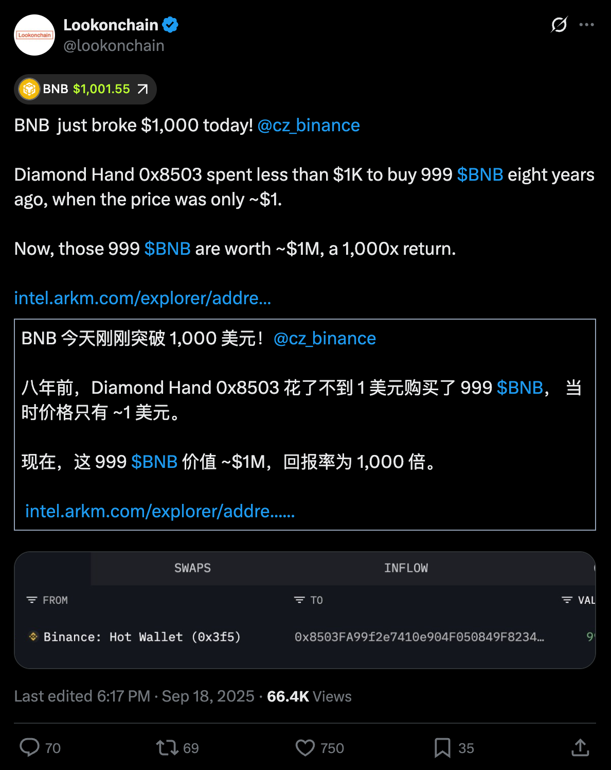 相关推文:https://x.com/lookonchain/status/1968620305988923411