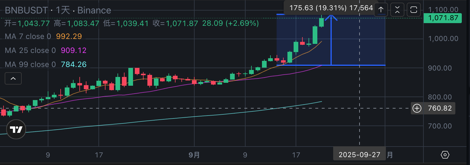 这一期又新增了一个币就是BNB,因为这段时间尤其是这周BNB的表现非常亮眼