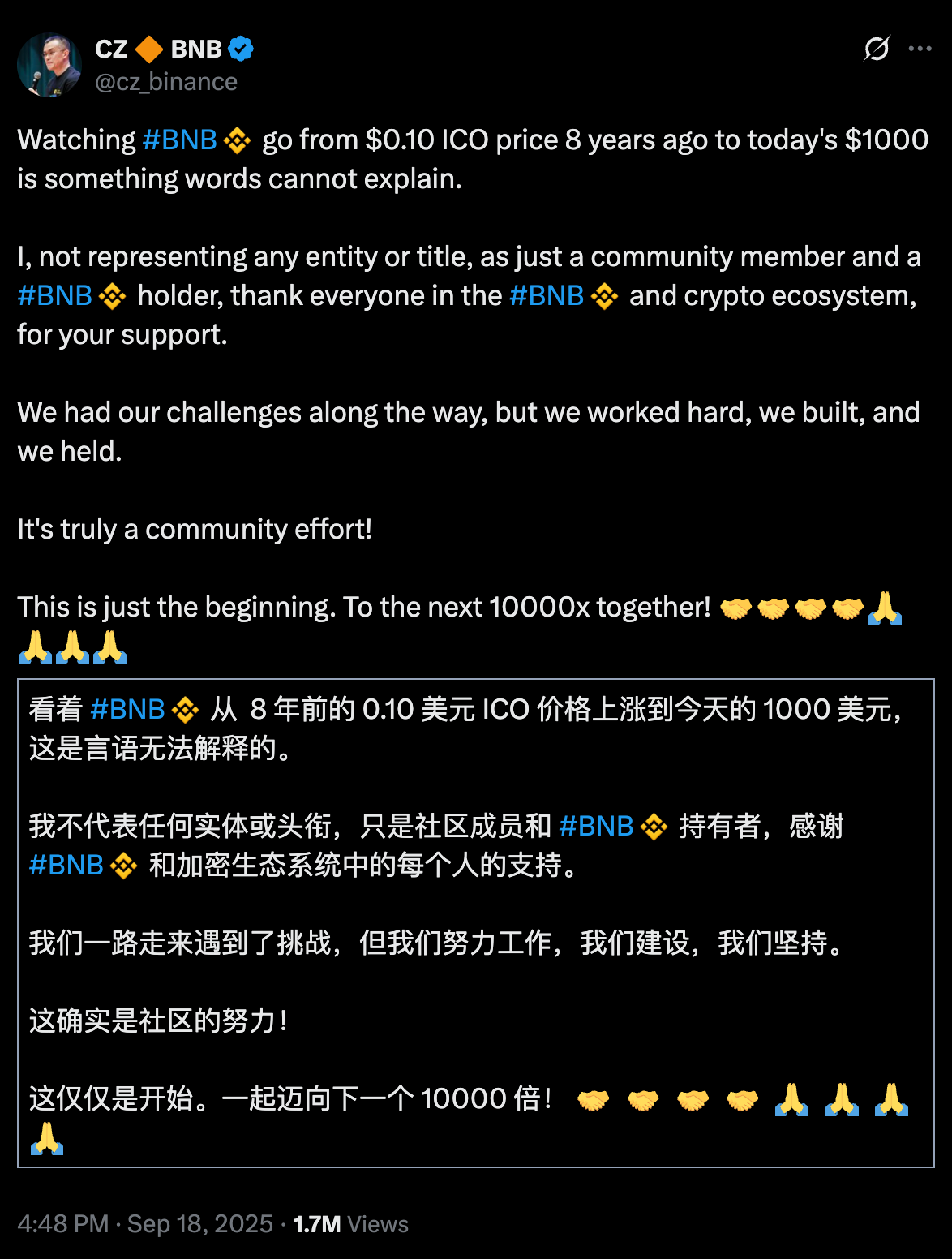千元入场,百万回报 —— BNB破千美元背后的钻石之手传奇