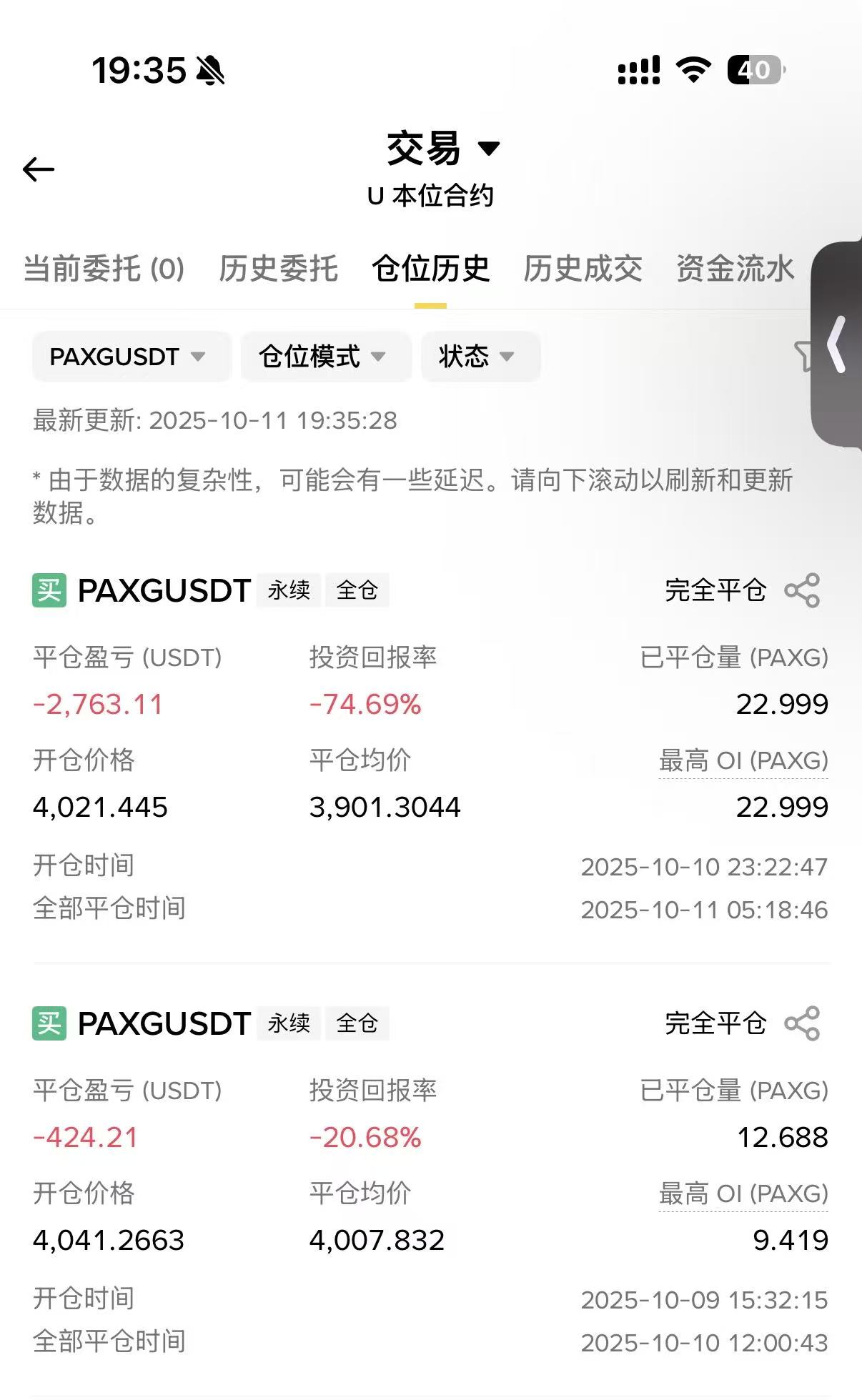 这辈子估计我都不敢加杠杆了,我真的没想到黄金把我爆仓了,我真操了。不然我做空能赚好多钱的,黄金它嘛能波动1500点,别的币什么不可能?