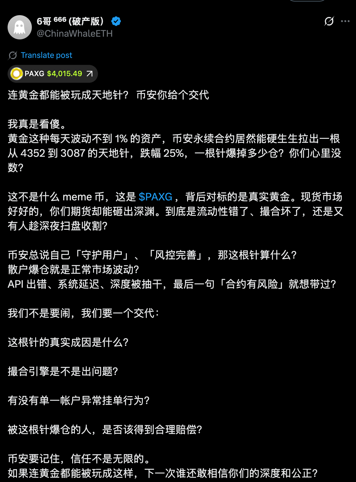 Bill说出了我的心声啊,交易所肯定会说是流动性对手盘的原因,但这样的话所有币的价格都可以因为流动性和对手盘出现天地针。