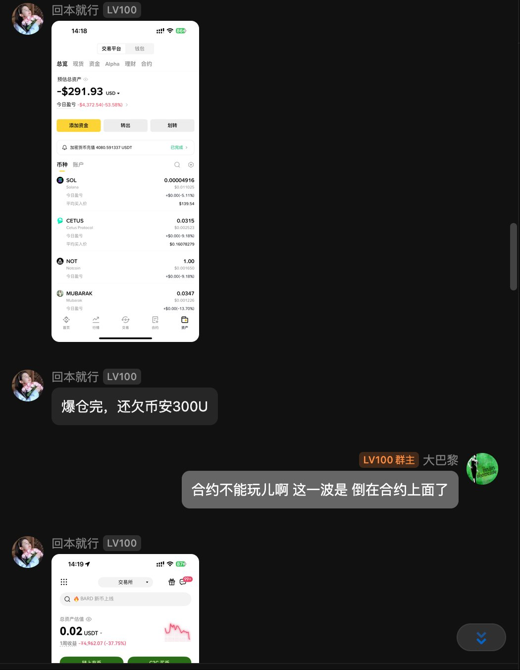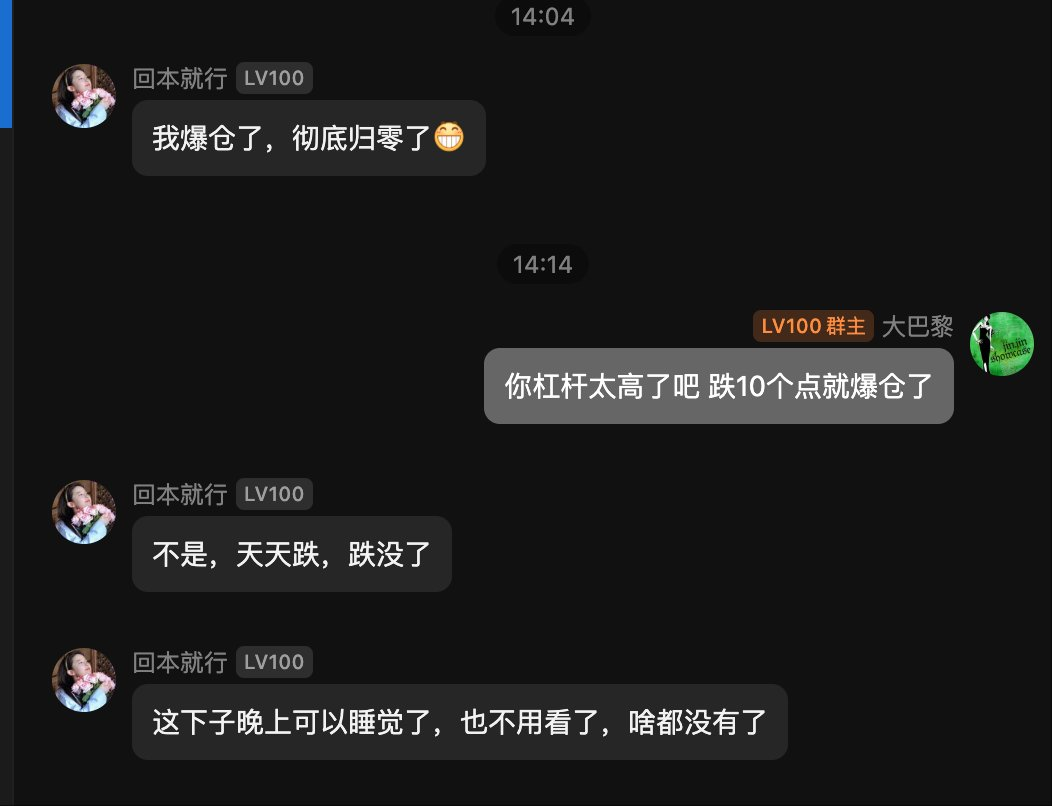 再后来美好的日子总是短暂 行情开始急转直下 他开始从纯现货接触上了抵押借U 会抵押借U了 抵押借U虽然不是合约 但是也是另一种形式的杠杆 那时候就已经开始被陆续清算过几次了 钱越来越少 100万盈利回吐后 又开始了负债 再后来和我一样 错过了川普等所有机会 再再后来接触到了合约